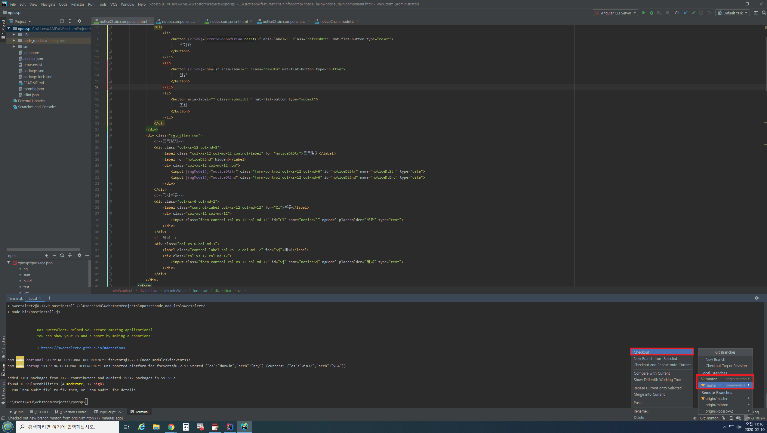 만들어 둔 branch를 선택하여 작업을 할 수 있고,